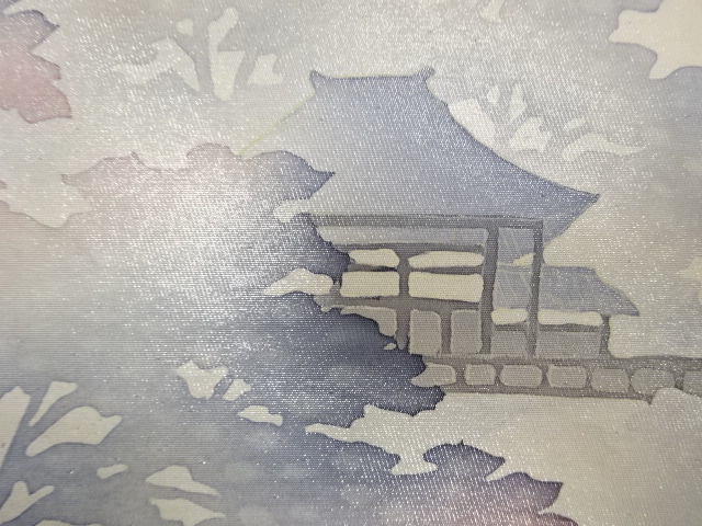 アンティーク 寺院風景模様袋帯(材料)  new