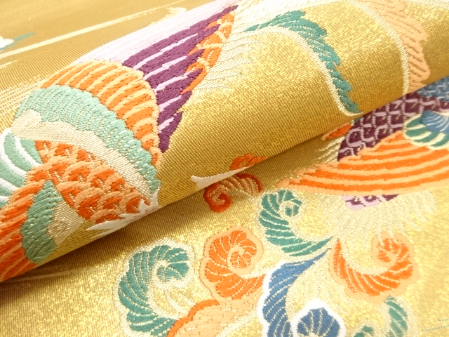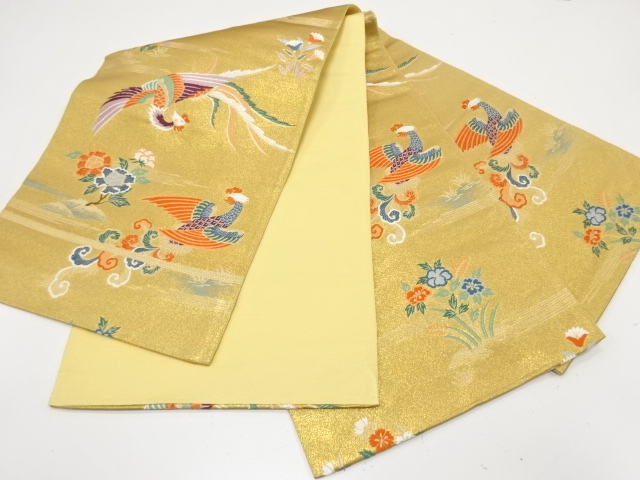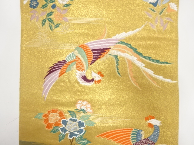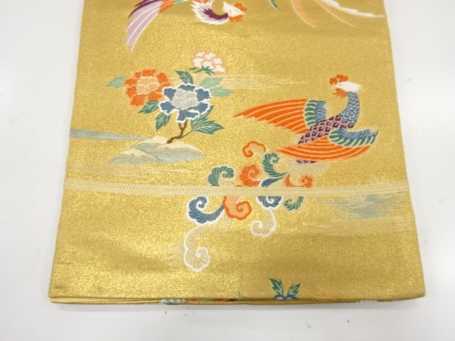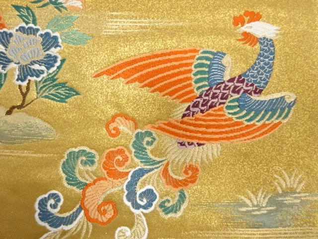 アンティーク 鳳凰に牡丹・草花模様織り出し袋帯(材料)  new